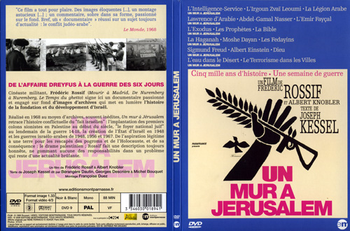 Réalisé en 1968 au moyen d’archives, souvent inédites, Un mur à Jérusalem retrace l’histoire conflictuelle du « fait israélien » : l’implantation des premiers colons sionistes en Palestine au début du siècle, « le foyer national juif » au lendemain de la guerre 14-18, la création de l’État d’Israël en 1948 et les guerres israélo-arabes de 1948, 1956 et 1967. De l’aspiration légitime à une terre pour les rescapés des pogroms et de l’Holocauste, et de sa conséquence : le drame palestinien ; Rossif fait une description toujours honnête, ne gommant aucune des responsabilités dans un problème qui reste d’une actualité brûlante.