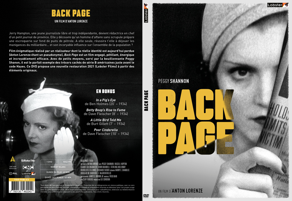 Film énigmatique réalisé par un grand réalisateur dont la réelle identité est aujourd’hui perdue (Anton Lorenze étant un pseudonyme), Back Page est un film engagé, pétillant, énergique et incroyablement efficace. Avec de petits moyens, servi par la bouillonnante Peggy Shannon, il est le parfait exemple des trésors cachés de série B américaine juste avant le code Hayes.