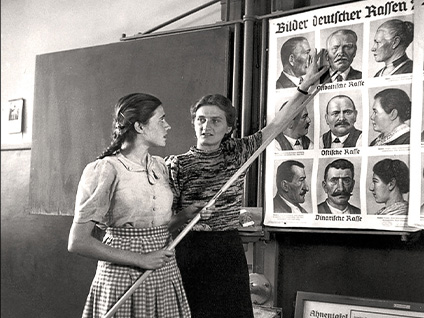 La guerre, avec le départ des hommes, contrarie l’idéal social genré des nazis, en propulsant les femmes dans le monde du travail (chauffeuses de tram, agricultrices, secrétaires administratives), puis dans la politique de colonisation à l’Est et la gestion des camps de concentration et d’extermination. Matrices d’une race supérieure, épouses de seigneurs et maîtres coloniaux, les femmes terminent la guerre en gibier pour la soldatesque soviétique et alliée : le viol, puis la prostitution, pour survivre, touchent des millions de femmes allemandes. C’est une réalité qui a longtemps été tue, comme les crimes de ces femmes gardiennes de camp, bourreaux violents qui, par leurs actes, ont ébranlé plus encore l’image que l’on se faisait de l’humanité